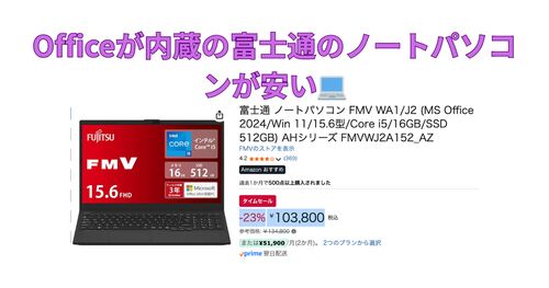 富士通のノートパソコンがAmazonでセールになっています。 価格:税込103,800円 ※2025年8月31日現在の価格 RAM 16GB、SSD 512GBあり、Microsoft 365 Basic+Office Home & Business 2024をプリインストールされています。 15.6インチ(反射が少ないノングレ…
